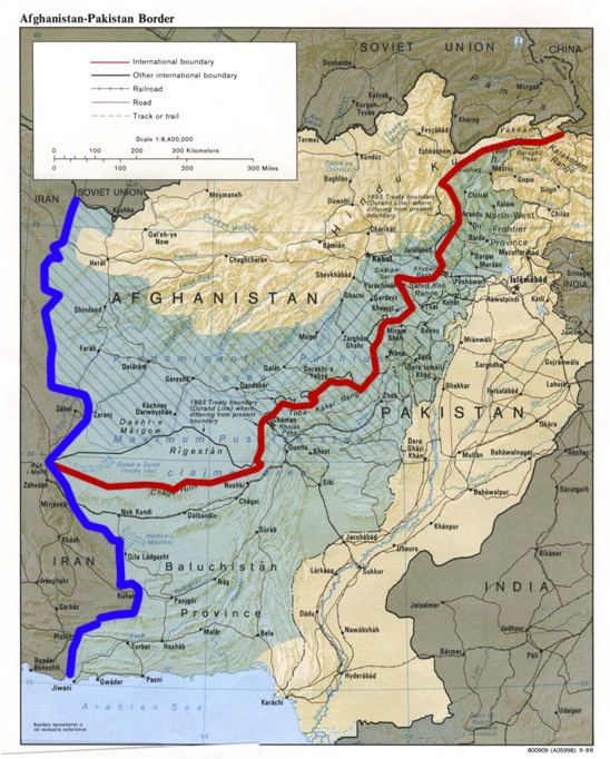 Ce sont les Britanniques qui tracent, au XIXe s., les limites de la Perse (La « Ligne Goldsmid », à partir de 1871, qui mécontente à la fois le shah de Perse et l’émir d’Afghanistan Shir Ali Khan) et de l’Afghanistan (La « Ligne Durand », à partir de 1893), divisant ainsi les populations baloutches. Ces tracés, peu modifiés ultérieurement, sont à l’origine de la « Question Baloutche » – un peuple divisé entre plusieurs Etats par des frontières coloniales.