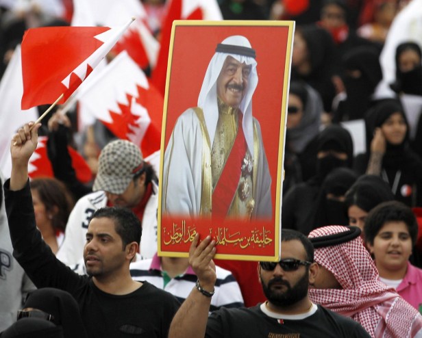 Dans la crise du printemps 2011, il est évident que le premier ministre a cristallisé soit, de la part d’une bonne partie des opposants, une hostilité confinant parfois à la haine; soit, de la part des éléments sunnites les plus radicaux, un soutien ostentatoire et bruyant lors de manifestations pro-régime où les portraits du premier ministre étaient et restent souvent plus nombreux que ceux du roi, et sont souvent associés, de manière très significative, aux portraits du roi Abdallah d’Arabie saoudite. L’un des moyens, dans l’archipel, de savoir si l’on se trouve dans un quartier sunnite, est de mesurer la densité des portraits du premier ministre, partout placardés. C’est là un marqueur identitaire aussi net que la présence des drapeaux et bannières noirs dans les quartiers et villages chiites.