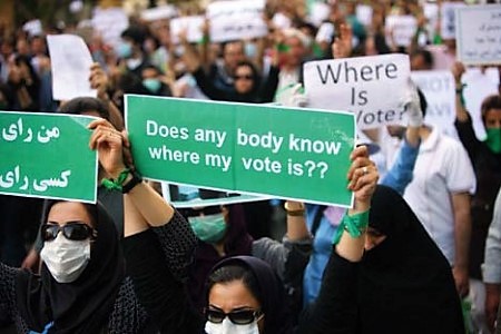 Le retour de balancier a été spectaculaire au printemps 2009 quand, après un début de campagne sans tonus, une cristallisation politique s’est faite autour du candidat du mouvement Vert Mir Hossein Moussavi. Celui-ci, en quelques semaines, est passé du statut de candidat « réformateur au sein du système » agréé par la commission électorale, à porte-parole de l’écrasante majorité de tous les électeurs (et, en particulier, de toutes les électrices) aspirant à un changement politique profond. Et, du coup, la participation électorale le 12 juin 2009 a été remarquablement élevée, estimée à environ 85% par l’ensemble des observateurs nationaux et internationaux. Et la confiscation des résultats de ce premier tour par le « coup d’Etat électoral » de l’équipe de Mahmoud Ahmadinejad a été, du coup, d’autant plus insupportable à une grande partie du corps électoral, provoquant les plus importantes manifestations anti-régime en Iran depuis des années, autour de la question mille fois scandée « Où est mon vote ? »