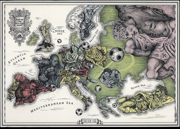 Quelles sont donc les frontières de l’Europe du football? Née en 1954, en pleine Guerre froide, l’UEFA compte actuellement 53 fédérations-membres: la liste en est aisément accessible, et elle dessine les contours d’une Europe du ballon rond aussi surprenante que très géopolitique. En Europe occidentale, signalons l’absence d’un « Equipe nationale du Royaume-Uni », celui-ci étant représenté par l’Angleterre, l’Ecosse, le Pays de Galles et l’Irlande du Nord. Gibraltar est « membre associé »,au grand dam de l’Espagne. Monaco n’est pas membre de l’UEFA, mais d’un improbable « Groupe de travail des petites nations de la FIFA ». Si San-Marin est membre, pas d’équipe officielle de l’Etat de la Cité du Vatican. Plus sérieusement, pour revenir à la question initiale, mentionnons parmi les membres « européens » orientaux –nous avons volontairement formé des couples parfois improbables: l’Azerbaïdjan et l’Arménie; la Géorgie et la Russie; la Biélorussie et le Kazakhstan… Ainsi que la Turquie (candidate à partir de 1959, Ankara est « full member » depuis 1962, après 8 ans au sein de la Fédération asiatique) et Israël (« full member » depuis 1994, après son expulsion de la même Fédération asiatique en 1974)… Le Kosovo n’est pas encore intégré, mais « peut recevoir des matchs amicaux », ce qui n’est pas le cas de la République turque de Chypre du Nord, non reconnue par l’UEFA, pas plus que les fédérations de football de Transnistrie, d’Abkhazie, d’Ossétie du Sud et du Haut-Karabagh. Bref, l’inventaire des fédérations membres -et des absents- de l’UEFA nous donne une belle leçon de géographie historique européenne…