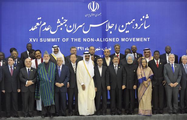 On le sait, le Mouvement des non-alignés, issu en partie de la conférence de Bandung de 1955, a été formalisé en 1961. On se souvient aussi -et nous simplifions volontairement- que les membres du MNA ont été, pendant la guerre froide, majoritairement alignés: et plutôt sur les positions soviétiques, comme le rappelait assez régulièrement le « vote automatique » majoritaire que Moscou pouvait facilement réunir à l’Assemblée générale de l’ONU dès qu’il s’agissait de dénoncer les Etats-Unis et leurs alliés. Pour autant, et surtout passées les périodes de la décolonisation et de la Guerre froide, le MNA n’a jamais été plus qu’un forum réunissant un nombre conséquent de pays, et permettant donc aux intervenants de s’exprimer donc devant un public fourni.