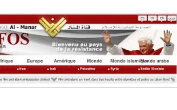 Bandeau d’accueil du site d’Al-Manar, 14/9/2012 (capture d’écran. Cliquer pour agrandir)