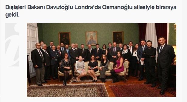 Alors qu’il se trouvait à Londres pour rencontrer son homologue William Hague et donner une conférence à la LES (London School of Economics), le ministre turc des affaires étrangères, Ahmet Davutoğlu a reçu, le 7 mars dernier, lors d’un dîner à l’ambassade de Turquie, une vingtaine de représentants de la famille Osmanoğlu, qui a régné pendant plusieurs siècles sur l’Empire ottoman. S’exprimant après ce dîner historique, le chef de la diplomatie turque a déclaré : «Je suis heureux de rencontrer la famille Osmanoğlu qui n’a pas perdu le contact avec la Turquie en dépit du fait qu’elle réside à l’étranger depuis longtemps. J’aurais aimé vous rencontrer plus tôt. J’espère que nous pourrons nous revoir plus régulièrement.»