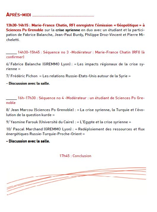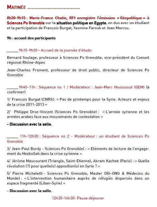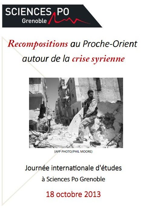 organise, le 18 octobre 2013, de 9h à 18h, une journée internationale d’études et de débats sur « Les recompositions au Proche-Orient autour de la crise syrienne » . Nous y avons présenté une analyse sur « Le Hezbollah et la guerre en Syrie » qui est reproduite dans un post du 25 octobre 2018.