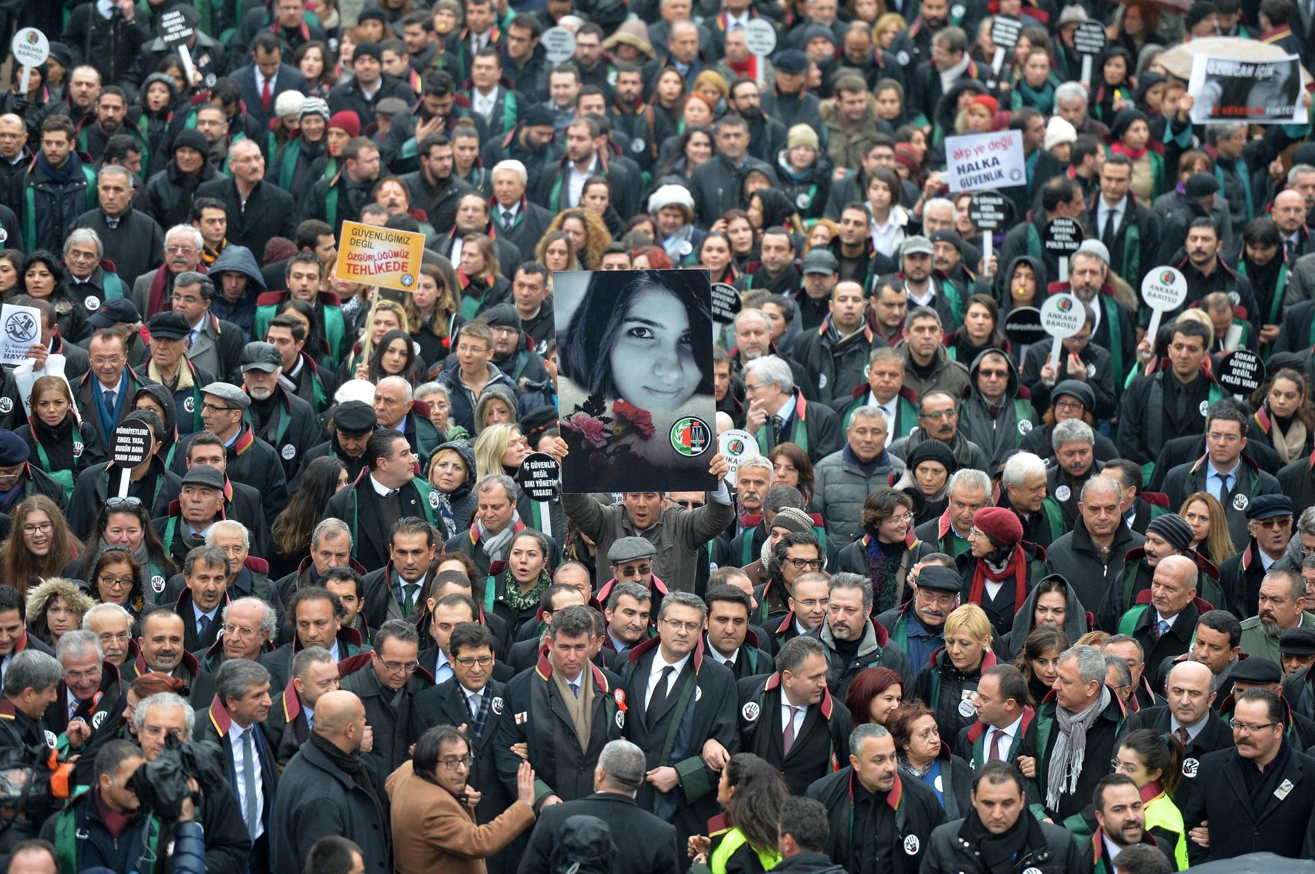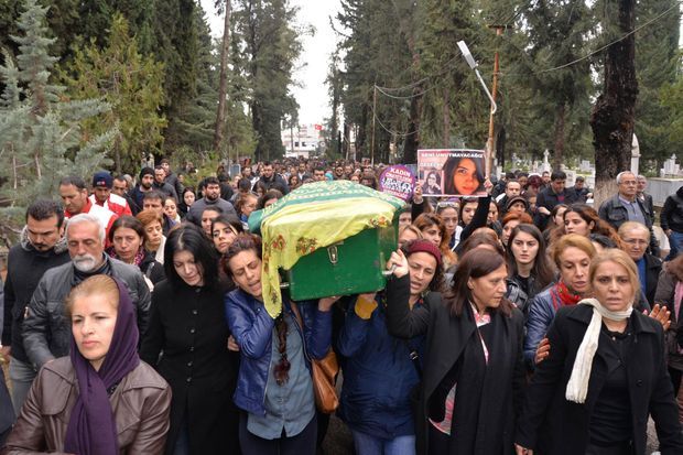 La violence des faits, qui révèlent en outre une de sorte de solidarité familiale malsaine dans le crime, a soulevé une vague d’indignation dans tout le pays. Le 14 février, plusieurs milliers de personnes ont assisté aux funérailles de l’étudiante de Mersin, au cours desquelles, en dépit des rappels à l’ordre de l’iman qui officiait, les femmes présentes ont refusé de se tenir à l’écart, s’affichant en première ligne de la cérémonie et portant même le cercueil de la victime, avant et après la prière des morts, ce qui est une tâche traditionnellement dévolue aux hommes dans le rituel funéraire musulman. Les jours qui ont suivi ont vu s’amplifier ce phénomène de protestation. Le lundi 16 février est ainsi devenu un véritable « lundi noir », un deuil volontaire étant observé dans de nombreuses villes du pays. Le 18 février a été marqué par des manifestations très importantes. A Mersin, près de 15 000 personnes se sont rassemblées sur le campus de l’Université Çağ où Özgecan faisait ses études. Les municipalités d’Adana et de Mersin ont du affréter des bus pour permettre aux citoyens qui le voulaient de se joindre à la manifestation. Le même jour des cortèges de protestation se sont formés à Antalya, Batman, Bilecik, Cankırı Eskişehir, Giresun, Izmir, Karabük… À Diyarbakır, où des manifestations ont eu lieu également, les chauffeurs de minibus ont accroché un ruban noir à leur véhicule, tant pour marquer leur émotion, que pour se désolidariser de leur collègue-meurtrier.