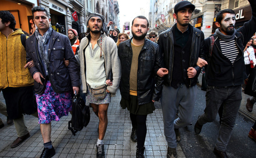 Le meurtre d’Özgecan Aslan, 19 ans, violée, assassinée et brûlée par trois hommes à Mersin, a provoqué depuis le 13 février une vague d’indignation sans précédent en Turquie. Des dizaines de milliers de personnes, hommes et femmes, ont défilé dans tout le pays pour dénoncer le meurtre d’Özgecan et les violences faites aux femmes, qui vont statistiquement se multipliant ces dernières années. Le 14 février, au contraire de toutes les traditions islamiques et malgré les protestations des imams, le cercueil d’Özgecan a été porté en terre par des femmes. Samedi 21 février, des hommes en jupes ont défilé sur l’avenue Istiklal à Istanbul pour « soutenir toutes les femmes .» Mis en cause, le gouvernement islamo-conservateur de l’AKP a promis de punir sévèrement les auteurs des faits. Mais l’opposition et les mouvements féministes reprochent au président Recep Tayyip Erdoğan, à nombre de ses ministres (femmes incluses) et à son parti, au pouvoir depuis 2002, d’entretenir, sinon d’encourager, les violences contre les femmes par leurs déclarations réactionnaires répétées sur « la place des femmes », « le rire des femmes », la maternité, la mixité, etc., multipliant les stéréotypes patriarcaux et religieux discriminant les femmes. JPB