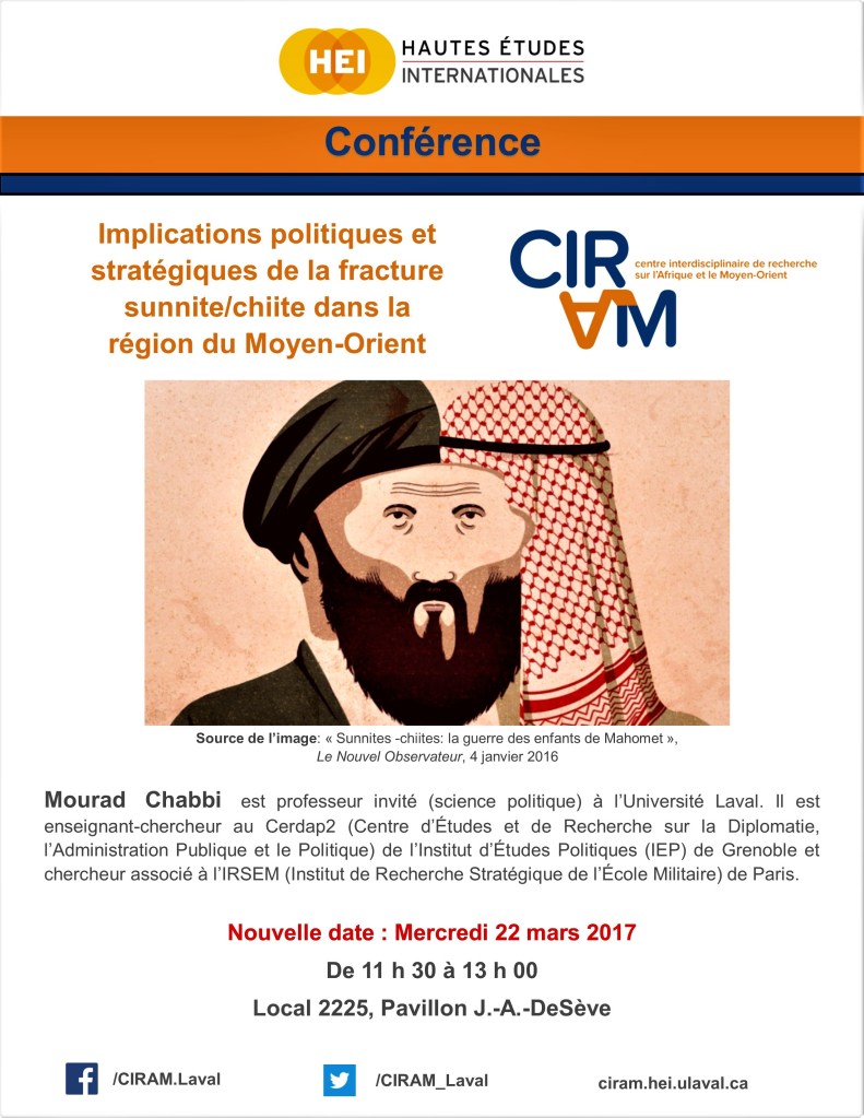 Mourad Chabbi a soutenu en 2013 à l’Université Lyon 3, sous la direction de Jean-Paul Joubert, une thèse de science politique: « Surpuissance et sous-complexe régional : application pour une étude sécuritaire de l’Iran au sein du Golfe depuis 1989 ». En 2016, il est professeur invité à l’Institut des Hautes études internationales (HEI) de l’Université Laval, Québec, ainsi que chercheur au CERDAP-2 à l’Institut d’Études Politiques de Grenoble (Université Grenoble Alpes). Il est chercheur associé à l’Institut de Recherche Stratégique de l’École Militaire (IRSEM) à Paris, et ATER à l’Université Jean Moulin (Lyon 3) . Il est l’auteur de nombreuses publications, articles et directions d’ouvrages (https://fr.linkedin.com/in/mourad-c-37800748)