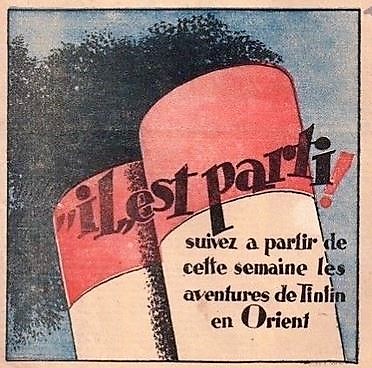 Le jeudi 1er décembre 1932, Le Petit Vingtième (supplément pour la jeunesse du journal de Bruxelles Le Vingtième Siècle) publie une illustration de Hergé (l’alias de Georges Remi, 1907-1983), en forme de « carte-annonce » pour la prochaine aventure de Tintin, devant débuter la semaine suivante : «Les aventures de Tintin, reporter en Orient. Les Cigares du Pharaon ». Dessinée en noir et blanc au crayon et à l’encre de Chine cette carte grand format (43,5 x 61 cm) est publiée pliée en 4 dans le journal. 60 ans après, en 1992, à l’occasion de la sortie de la collection des « Carnets de route de Tintin », la Fondation Hergé et les Éditions Casterman publient un retirage sur papier teinté de cette carte d’Hergé, limité à 1 000 exemplaires numérotés.