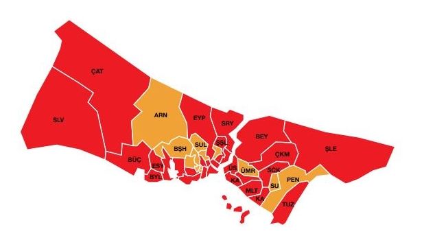 Nous ne traiterons pas ici de la deuxième campagne électorale, non plus que de la personnalité d’Ekrem Imamoğlu, ou de son slogan de campagne pacificateur (“Her şey çok güzel olacak!” “, soit “Tout ira très bien !“). Relevons juste quelques chiffres et pourcentages, à partir des comptages globaux et par quartiers au lendemain de la consultation (disponibles sur le site HDN: http://www.hurriyetdailynews.com/secim/23-haziran-2019-yerel-secimleri/istanbul-secim-sonuclari )