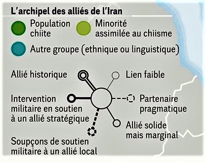 Bernard Hourcade distingue ainsi les alliés historiques (peu nombreux : pour l’essentiel le Hezbollah libanais, largement créé par les Iraniens eux-mêmes au début des années 1980) ; les interventions militaires de la Force Al-Qods des Gardiens (dirigée par l’omniprésent major-général Ghassem Soleimani) en soutien à des alliés stratégiques (L’Irak voisin dès 2003 ; la Syrie à partir de 2012) ; le soutien propagandiste à des alliés (les « rebelles houthis » au Yémen -l’assistance iranienne cependant devenant de plus en plus opérationnelle en 2018-2019) ou acteurs locaux (les contestataires du Bahreïn, ou les chiites saoudiens) ; des alliés solides mais marginaux (Arménie ; des minorités chiites régionales en Afghanistan, au Tadjikistan, au Pakistan). Nous y ajouterons un voisinage historique et de realpolitik avec la Turquie.Liens et réseaux chiites transnationaux : oui, depuis longtemps. « Croissant -ou axe -chiite » : c’est beaucoup moins évident, sinon dans la paranoïa des monarques arabes, et dans certains cercles boltoniens autour de la Maison Blanche.