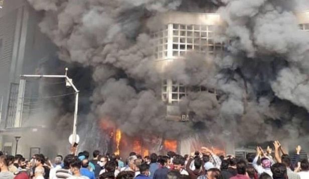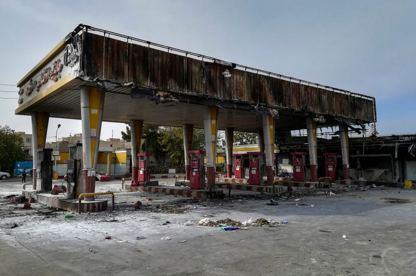 Cette décision inattendue provoque une immédiate flambée de manifestations dans les classes populaires dépendantes de la voiture (souvent pour pratiquer un double emploi, en particulier de taxi non déclaré). Ces manifestations, qui rassemblent au total des centaines de milliers d’Iraniens, dont une majorité de jeunes, tournent parfois à l’émeute. Elles se déroulent un peu partout dans le pays, mais en particulier dans les provinces et les villes moyennes, et à Téhéran à partir du 17 novembre : elles ont significativement commencé au soir du 15 novembre à Ahwaz, au Khouzistan (sud-ouest, près de l’Irak), une région industrielle périphérique paupérisée et particulièrement polluée, et partiellement arabophone et sunnite. Les manifestants bloquent les rues et les ronds-points, ou les autoroutes urbaines de Téhéran ; brûlent des véhicules, attaquent et incendient des bâtiments officiels (de nombreuses casernes de bassidj), des stations-service, des centaines d’agences bancaires.