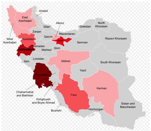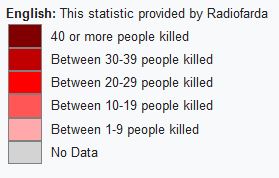 Carte des morts dans la répression de novembre 2019 élaborée par Radio Farda: