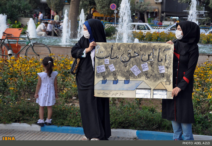 Photos ci-dessous: manifestation de femmes contre la pollution atmosphérique à Arak (centre-ouest) en août 2013