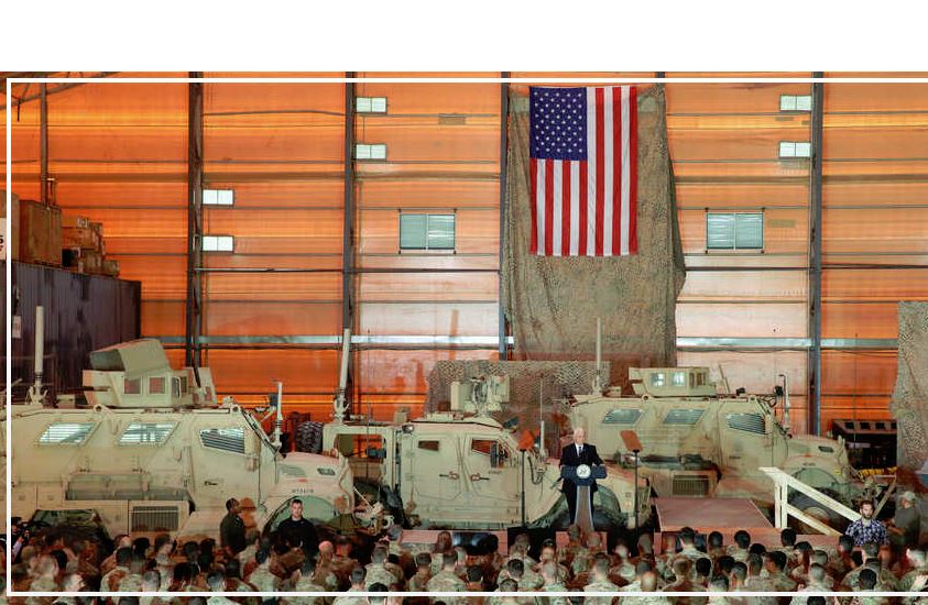 Trump et Melania à Al-Assad Airbase le 26 décembre 2018, et le vice-président Mike Pence le 23 novembre 2019