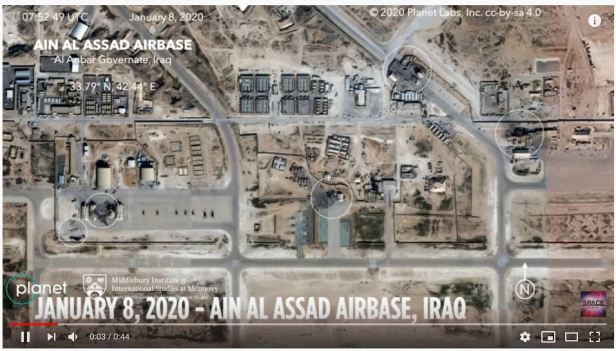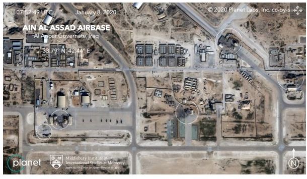 Sur les dégâts à Al Aïn, voir par exemple le 13/1/2020: https://www.dailymail.co.uk/news/article-7881839/New-images-damage-caused-Iranian-missile-strike-Iraqi-base.html