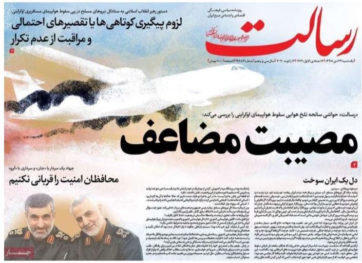 Resalat (conservateur): « La double catastrophe » [mort de Soleimani & le Boeing]