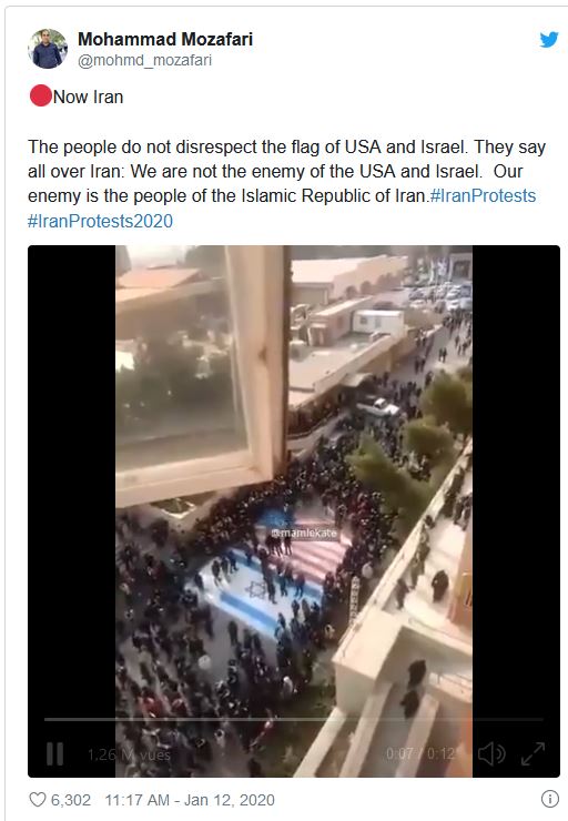 Une séquence inédite, qui a beaucoup circulé sur les réseaux sociaux iraniens, a aussi marqué les observateurs : devant l’université Shahid-Beheshti de Téhéran, les étudiants et manifestants refusent de piétiner les drapeaux américain et israélien peints sur la chaussée, et les contournent soigneusement 4. La scène semble s’être répétée dans plusieurs endroits. La répression policière d’un mouvement il est vrai très maîtrisé par les étudiants, sera moins brutale qu’en novembre, même si des blessures par balles ont été documentées. Et, comme en novembre, la police encadrera très étroitement les obsèques des victimes du crash du Boeing, veillant à isoler au maximum les familles, pour éviter que les veillées de deuil ne se transforment en manifestations.