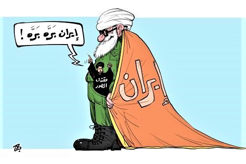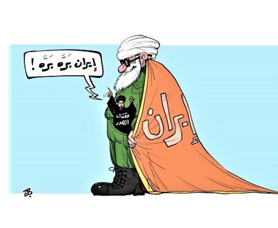 Logiquement, compte tenu de sa base sociale et de sa trajectoire politique, Moqtada al-Sadr a soutenu le hirak jusqu’en janvier. Puis il a été circonvenu en plusieurs temps. En Iran, en septembre 2019, drapé de l’abaya de la retraite spirituelle (itikaf) pendant les cérémonies de l’arbeïn, il a ostensiblement renouvelé son allégeance au Guide, et a été placé pour les photos officielles entre le Guide et Ghassem Soleimani. Ce qui a, en Irak, conforté sa réputation de girouette et d’homme des Iraniens : une caricature irakienne de 2016 le présentait déjà en train de crier « Iran, barra ! Barra ! » depuis le giron du Guide iranien….
