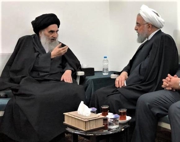 4Le président Rohani a rendu visite à al-Sistani à Najaf le 13 mars 2019 – une première.« Rouhani leverages Sistani visit to maneuver on Iran’s regional policy », Al-Monitor, March 13, 2019 : https://www.al-monitor.com/pulse/originals/2019/03/iran-iraq-rouhani-tour-sistani-historic-meeting-irgc-region.html.
