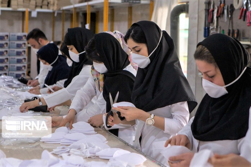 Production de masques médicaux dans un atelier de Rasht (sur la mer Caspienne) (Source: https://ar.irna.ir/photo/83690056/, sur le fil arabe)