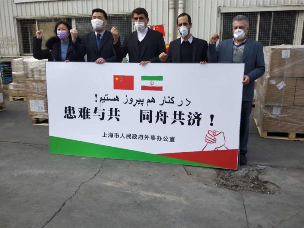 Comme lors de grandes catastrophes naturelles (tremblement de terre de Bam en 2003 ; grandes inondations en 2019) , des institutions internationales onusiennes ont proposé leur aide technique et financière à l’Iran contre l’épidémie (OMS), ainsi que l’Union européenne et certains Etats (l ‘UE3: France, Allemagne, Royaume-Uni), et des ONG (MSF, en mars, autorisée à installer un hôpital mobile à Ispahan, avant que l’autorisation ne soit annulée le 24 mars, vraisemblablement sous la pression des Gardiens de la révolution, structurellement hostiles à toute présence étrangère en Iran). L’ambassadeur de France a réceptionné les envois de Paris le 4 mars, en présence des médias iraniens.