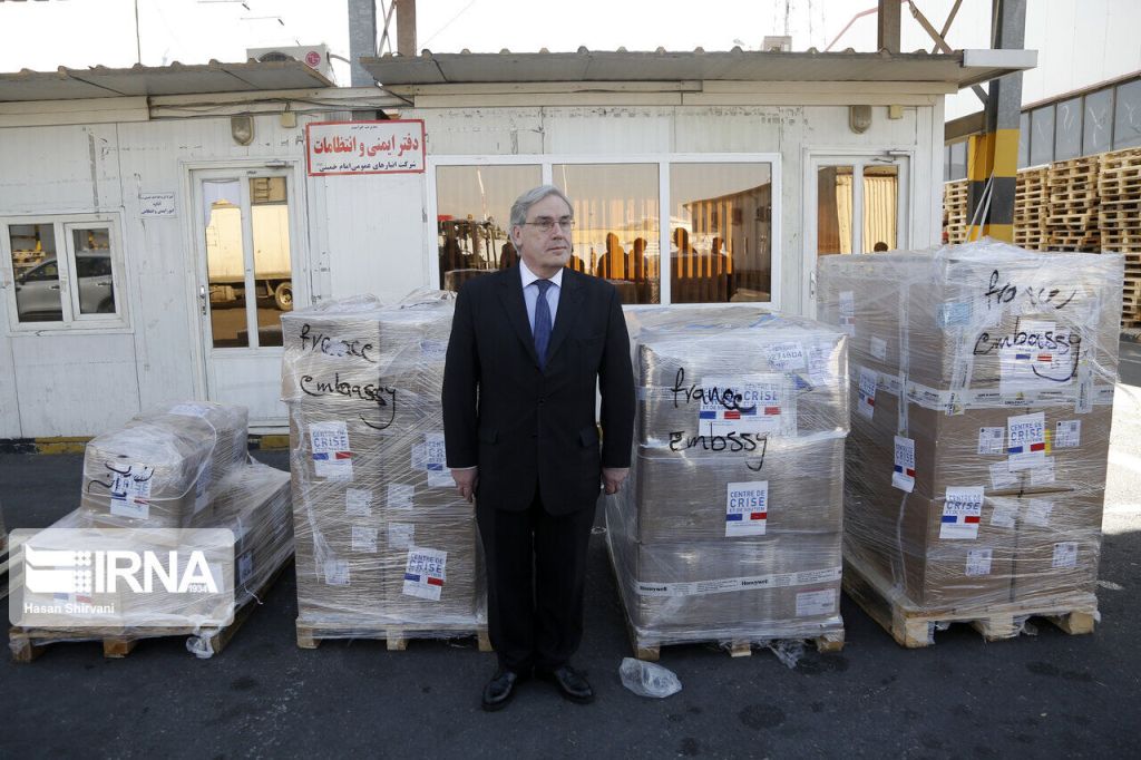 L’aide chinoise (ci-dessus) et l’aide française (avec l’ambassadeur de France, ci-dessous), réceptionnées à Téhéran