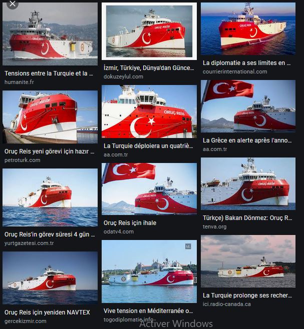 Mosaïque d’images du navire sismique turc Oruç Reis sur Google Images, 8/2020