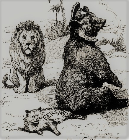 1907: la Perse entre le Lion et l’Ours (caricature du Punch, Londres)