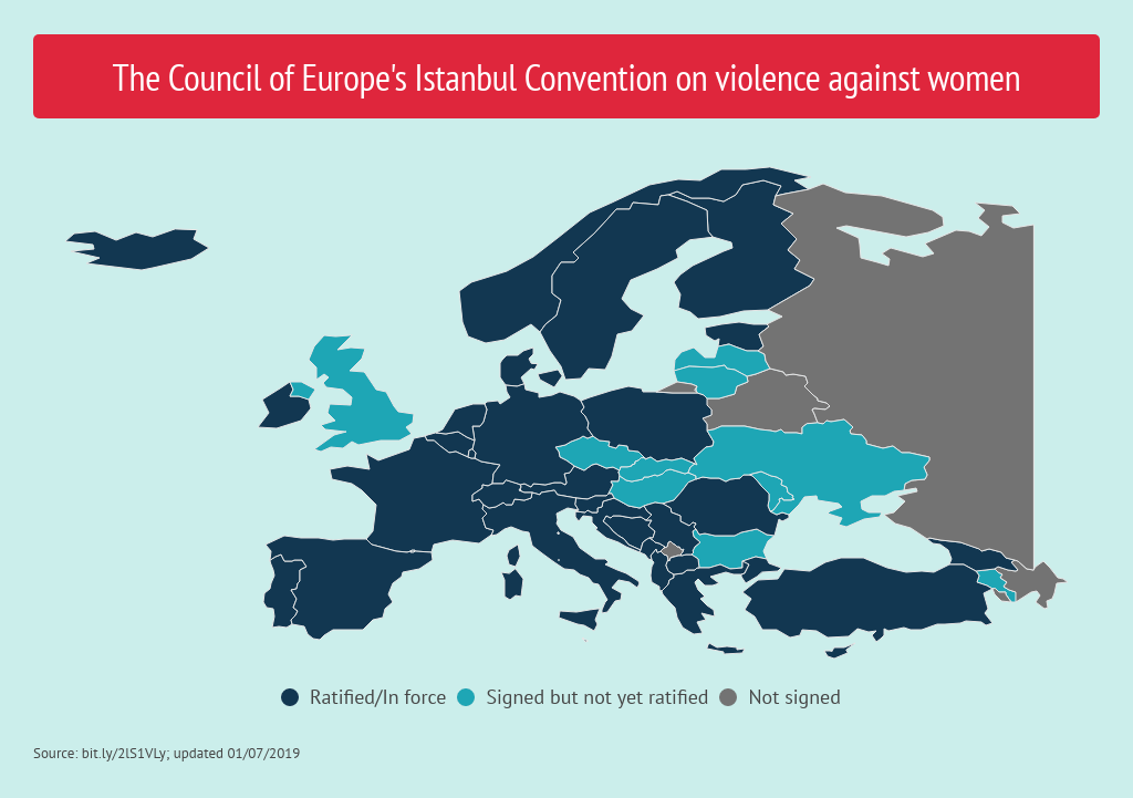 - Carte des pays ayant signé ou ratifié la convention en 2020- avant le retrait de la Turquie: