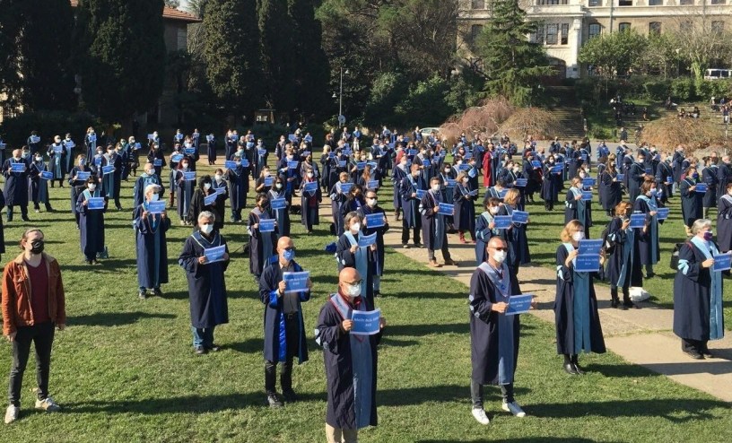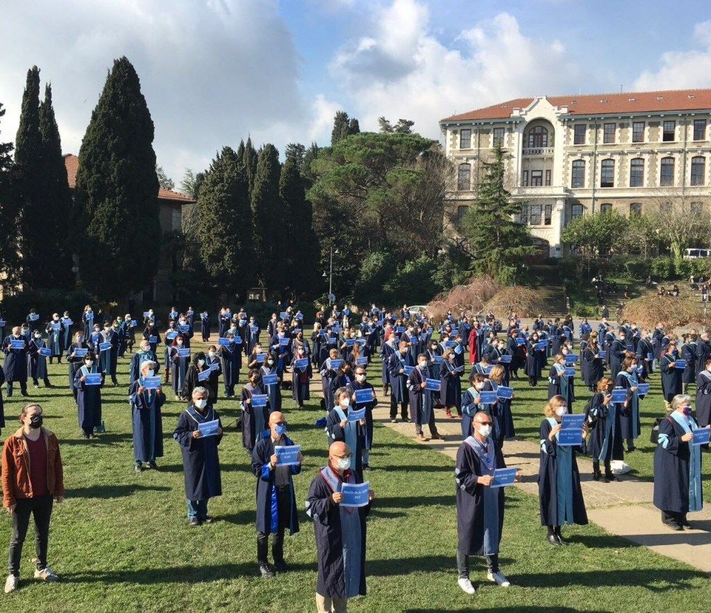Cette image, et toutes celles qui illustrent cette fiche: manifestations des enseignants et des étudiants de l’Université du Bosphore (Boğaziçi Üniversitesi) contre la nomination d’un recteur AKP par le président R.T.Erdoğan, en bafouant les libertés académiques traditionnelles (janvier-mars 2021)
