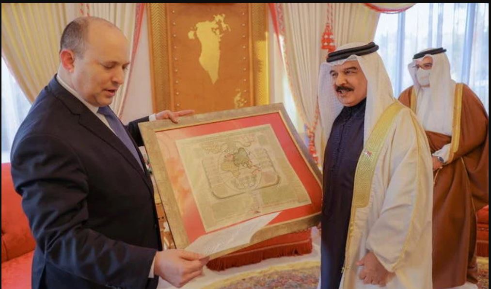 Après un passage à Abou Dhabi, Naftali Bennett a effectué le 14 février 2022 la première visite officielle d’un chef de gouvernement israélien à Bahreïn, Il y a rencontré le roi Hamad Al Khalifa ; le prince-héritier et premier ministre Salman ben Hamad (réputé réformiste, mais qui, depuis des années, se concentre prudemment concentré son plan de diversification économique Vision économique Bahreïn 2030) ; et plusieurs membres du gouvernement. Naftali Bennett a répété à Manama l’opposition d’Israël à un nouvel accord sur le nucléaire iranien, et qu’Israël ne serait «pas contraint par ce qui sera écrit dans les accords et maintiendra une totale liberté d’action partout et à tout moment, sans limitation». On a relevé que le discours anti-iranien, très ferme à Manama, avait été mis sous le boisseau lors de l’étape précédente de Bennett à Abou Dhabi, les EAU entendant maintenir par prudence des relations non conflictuelles avec le grand voisin iranien, avec lequel ils commercent intensivement.