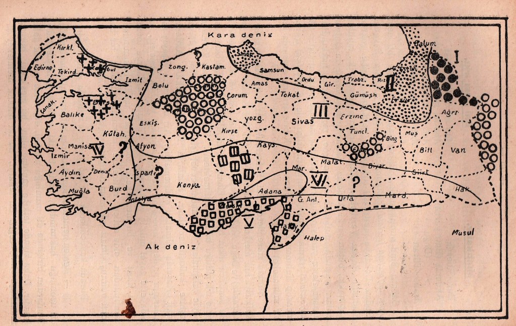 La première carte scientifique de répartition des sous-espèces de Turquie par Bodenheimer en 1942