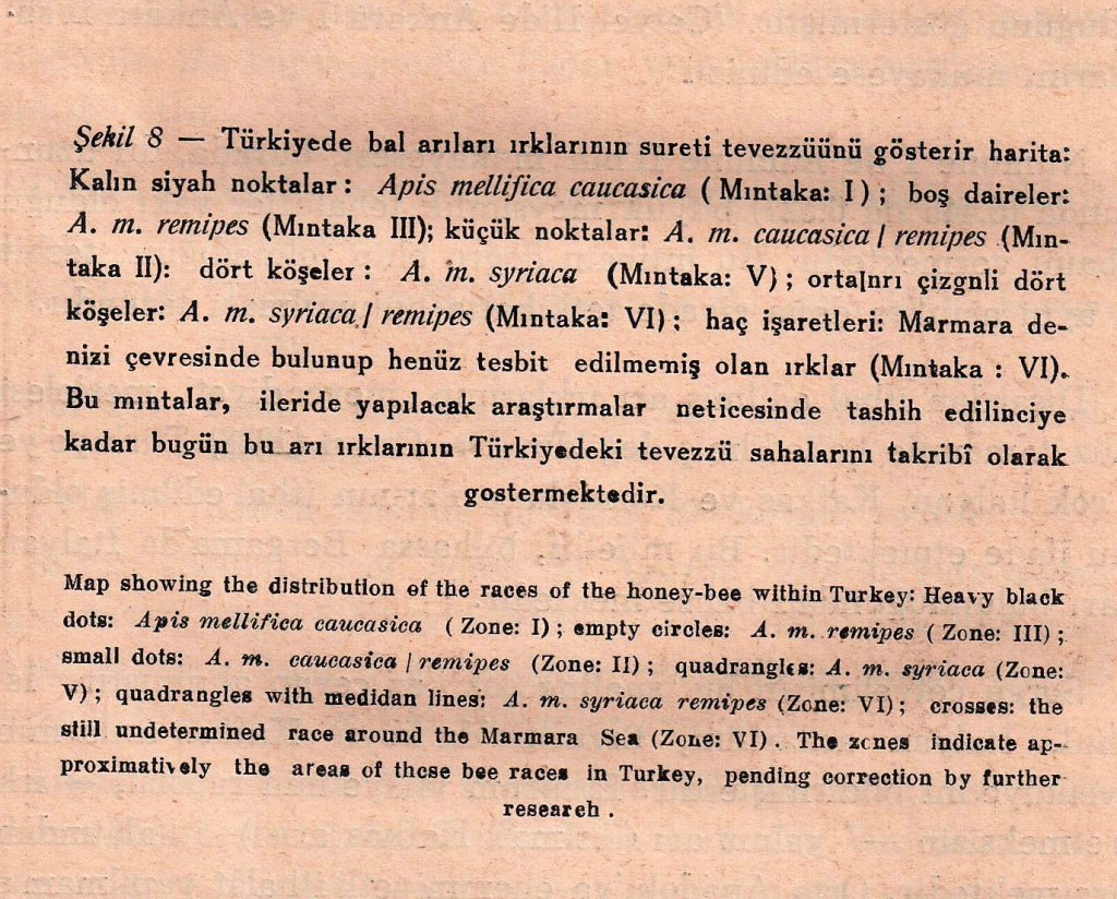Venons-en au sens de cette carte de Ruttner. On le sait peu en général, la Turquie est un grand pays d’apiculture, et d’apiculteurs et apicultrices – la production annuelle de miel, en hausse régulière, se situe entre 80 000 et 100 000 tonnes, au 2e rang mondial derrière la Chine (#8). Grâce à la diversité de son climat, de ses paysages et de sa flore. Grâce aussi, et surtout, à la richesse exceptionnelle de ses sous-espèces (ou « races », pour utiliser le vocable ancien encore usité) d’abeilles mellifères Apis mellifera. Elaborée initialement par le biologiste juif allemand et palestinien Friedrich Simon Bodenheimer dans son ouvrage fondateur de 1942 (#9), puis précisée, après de nombreux travaux intermédiaire,s par Friedrich Ruttner en 1988, la carte des abeilles en Turquie fait apparaître une véritable «diversité ethnique », avec plusieurs sous-espèces régionales (progressivement distinguées à partir de la fin du XIXe s.), comprenant elles-mêmes des écotypes adaptés à des environnements spécifiques :