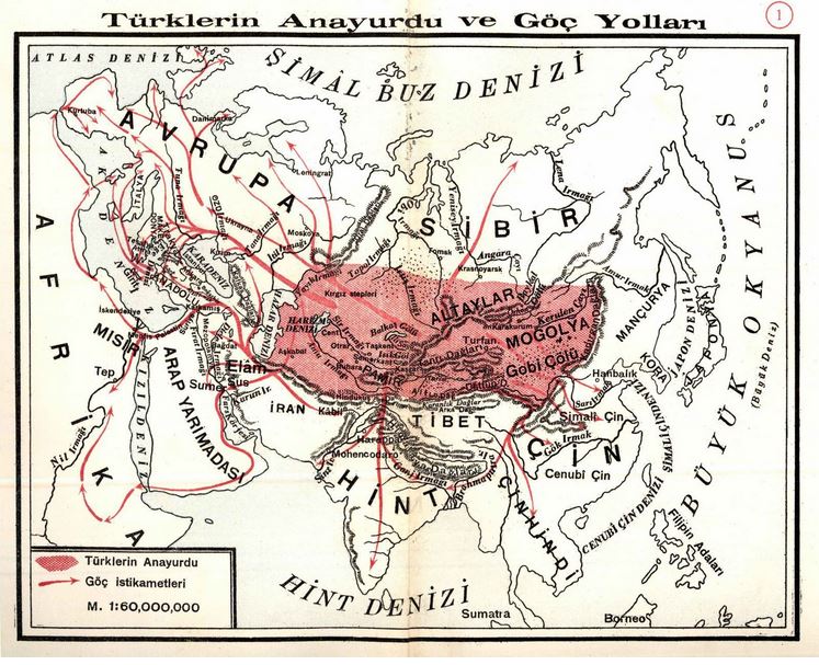La matrice originelle: une carte des origines des Turcs et de leurs courants migratoire dans Copeaux (2000)