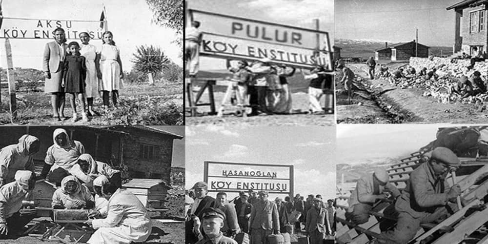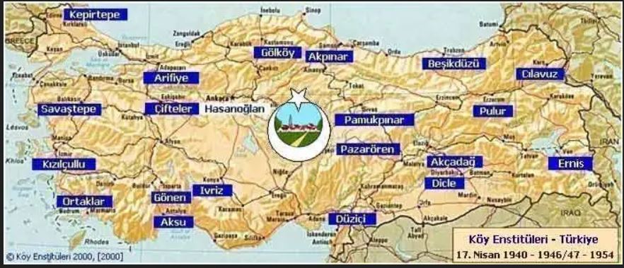 Préfigurés dès 1936 par les Ecoles de chefs de village, les Instituts de village ont prospéré entre 1940 et 1946 sous l’autorité du ministre de l’Education nationale Hasan Âli Yücel (démis ultérieurement par le premier ministre Recep Peker). Son successeur Reşat Şemsettin Sirer les transforme en écoles plus classiques, en supprimant certaines matières jugées inutiles – et vraisemblablement subversives (psychologie, sociologie, œuvres de la littérature étrangère), mais en conservant certains grands principes des Instituts de village (dont l’alliance de la théorie et des travaux pratiques). Cette nouvelle version des Instituts est cependant fermée par la loi n° 6234 du 27 janvier 1954, sous le régime du Parti démocrate, (issu d’une scission de droite et islamisante du mouvement kémaliste), arrivé au pouvoir en 1950.