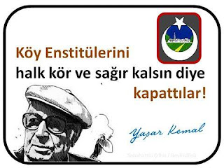 La fermeture des Instituts de village en 1954 a été critiquée de manière virulente par les kémalistes, par les nationalistes et par les communistes, ces deux derniers courants hostiles au poids des Américains dans l’affaire. La fermeture a fait l’objet de multiples articles de dénonciation de l’abandon du projet d’ouverture de la paysannerie à la modernité et à la citoyenneté républicaines. Outre les politiques, des intellectuels ont fait chorus. Le grand romancier, journaliste et militant Yachar Kemal (1923-2015), né dans une pauvre famille kurde, sorti de l’école primaire kémaliste, qui a été successivement berger, ouvrier agricole dans les champs de coton, ouvrier d’usine, employé du gaz, écrivain public, et prisonnier politique dans les années 1950 pour appartenance au Parti communiste (clandestin), a ainsi écrit quelques années après 1954 un poème dénonçant la fermeture des Instituts de village, dont une phrase est souvent citée: « Köy Enstitülerini halk kör sağir kalsın diye kapattılar / Ils ont fermé les instituts de village pour que les gens restent aveugles et sourds. » # 12