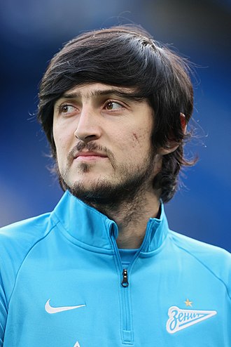 Sardar Azmoun en 2019 et 2020, jouant alors au Zenit Saint-Petersbourg, sponsorisé par Gazprom….