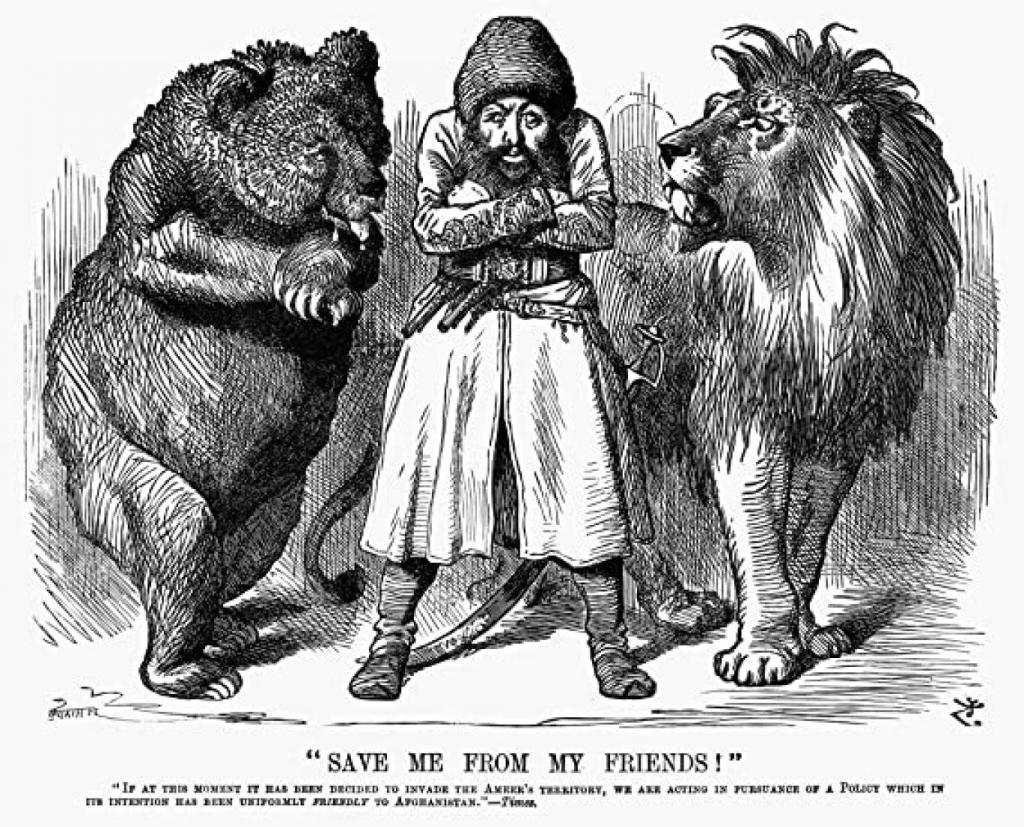 La Perse (le shah persan…) , coincée entre l’Ours russe et le Lion britannique: deux caricatures britanniques de 1907 et 1911. Le fondement historique du mot d’ordre de Khomeyni en 1979: « Ni Est, ni Ouest »…