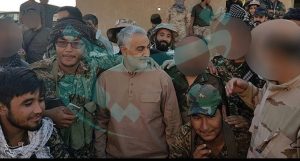 Qassem Soleimani, commandant de la Force Al-Qods des pasdaran, acteur majeur de l’intervention directe de Moscou en Syrie en 2015 (ici avec des miliciens hazaras afghans de la Division Fatimiyoun , en Syrie, le 12 juin 2017. Photo: Tasnim)
