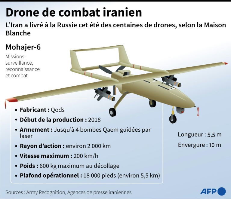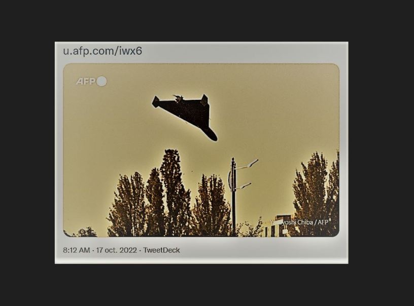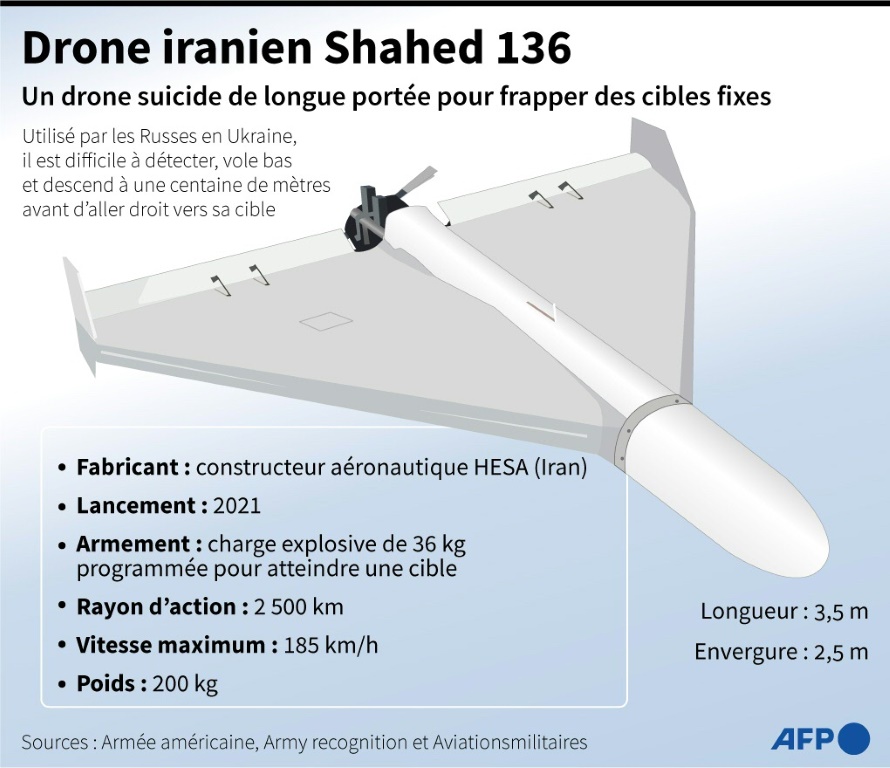 Un drone iranien Shahed-136 va frapper Kiev – photo AFP du 17 octobre 2022.