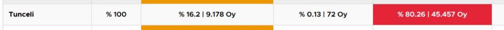 Le résultat des deux candidats dans leurs bastions régionaux d’origine: Rize pour Erdoğan (en jaune) ; Tunceli pour Kılıçdaroğlu (en rouge)