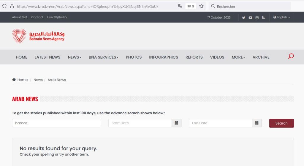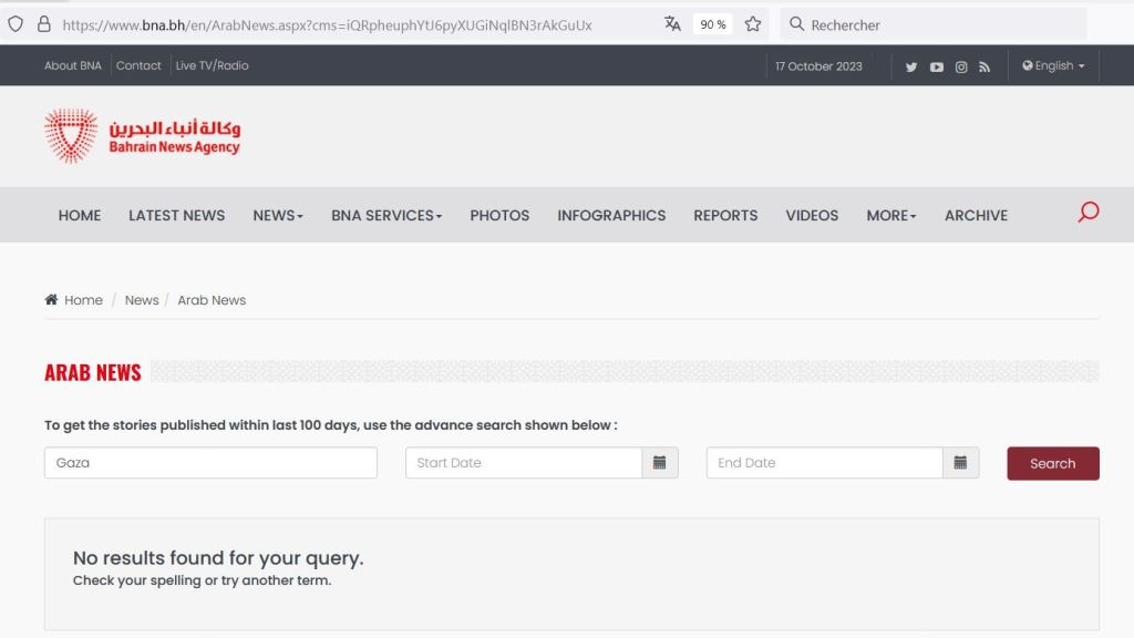Le régime de Manama est dans une situation délicate. Ce qu’illustre le silence remarquable des médias du royaume (tous étroitement verrouillés par la censure) sur les événements depuis 10 jours. La recherche des mots-clés « Gaza » et « Hamas » sur le site de la Bahrain News Agency (BNA, officielle) ne donne aucun résultat, au-delà du renvoi à quelques communiqués multilatéraux du Conseil de coopération du Golfe ou de la Ligue arabe.