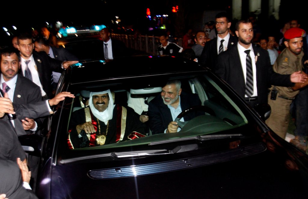 L’émir Hamad Al-Thani du Qatar et son hôte Ismaël Haniye (Hamas) à Gaza le 23 octobre 2012
