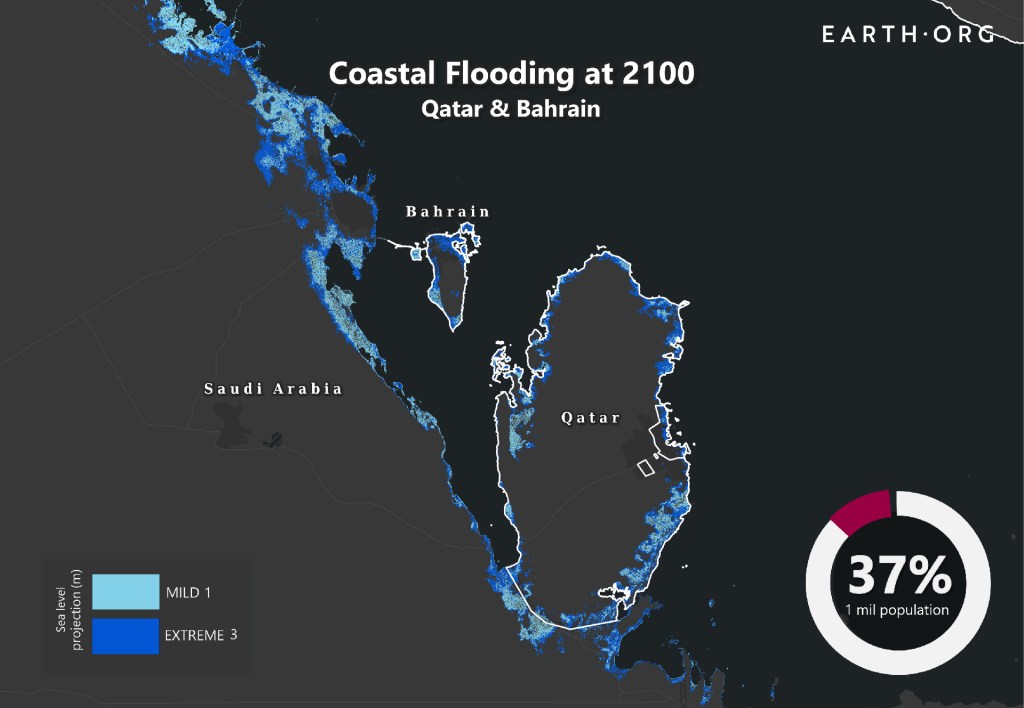 MULHERN Owen, « Sea Level Rise Projection Map – Qatar and Bahrain », Earth.org, Sep 17th 2020. URL: https://earth.org/data_visualization/sea-level-rise-by-2100-qatar-and-bahrain/