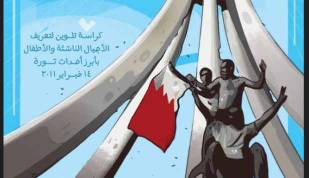 Pour marquer le 13e anniversaire du 14 février, à défaut que la contestation puisse s’exprimer dans l’espace public, la Société islamique Al-Wefaq (principal parti d’opposition, islamiste chiite, très largement implanté dans la population chiite du royaume, dissous en 2016) a publié en ligne un album de coloriage intitulé « La génération de la Perle »1. Avec un sous-titre explicatif : « Un livret de coloriage pour faire découvrir aux enfants et aux jeunes générations les événements les plus marquants de la Révolution du 14 février 2011 ». Al-Wefaq a invité les parents à « imprimer le cahier à la maison, et à enseigner à leurs enfants l’histoire des événements de 2011 ».
