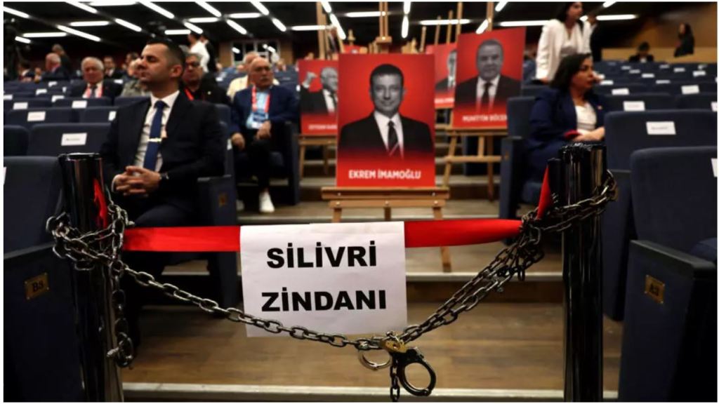 Au congrès du CHP à Ankara le 21 septembre 2025, les absents emprisonnés à la prison de Silivri (dont Ekrem Imamoglu), sont représentés par leur portrait