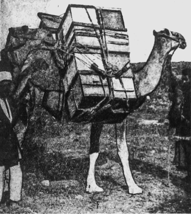 Vers 1890, en Palestine : transhumance de ruches Langstroth de la famille Baldensperger