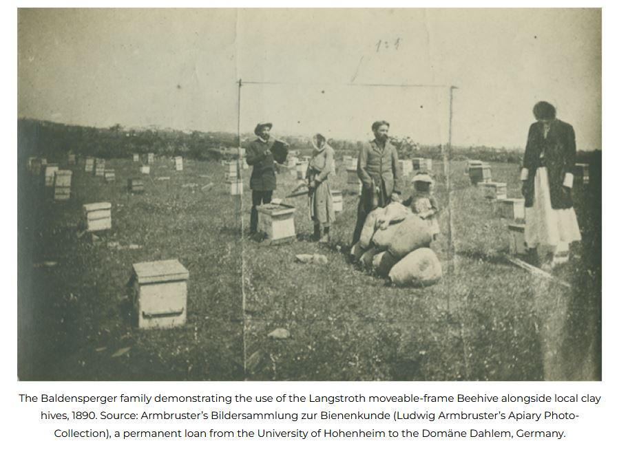 En matière d’activité apicole, un tournant décisif intervient autour de 1880, lorsque Philip J. Baldensperger entre en contact avec des figures majeures de l’apiculture moderne internationale, notamment l’Américain Frank Benton (1852-1919) et le Canadien D. A. Jones. Présent pendant plusieurs années en Méditerranée orientale, Benton organise à Chypre, à Beyrouth et en Syrie des centres d’élevage de reines chypriotes, « syriennes » et « palestiniennes », qu’il destine à l’exportation vers les États-Unis, le Canada et l’Europe. Baldensperger acquiert auprès de Benton une formation approfondie aux méthodes modernes : utilisation des ruches à cadres mobiles (type Langstroth) ; élevage et sélection des reines ; standardisation des pratiques. À son retour, cette expérience provoque une reconversion familiale: les cinq frères abandonnent progressivement leurs autres activités agricoles pour se consacrer entièrement à l’apiculture. Elle repose sur des ruchers répartis sur plusieurs terroirs aux ressources florales variées, entre la Judée, les environs de Jérusalem, la vallée du Jourdain, le littoral de Gaza. Cette apiculture est de type pastoral : les ruches sont déplacées au fil des saisons entre plaines et montagnes, afin d’exploiter les floraisons successives. Les ruches (Langstroth) sont transportées à dos de dromadaires et de mules.